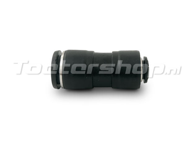 Two-way push-in fitting for 12mm and 8mm hoses. Straight adapter for converting 12mm hose to 8mm hose.